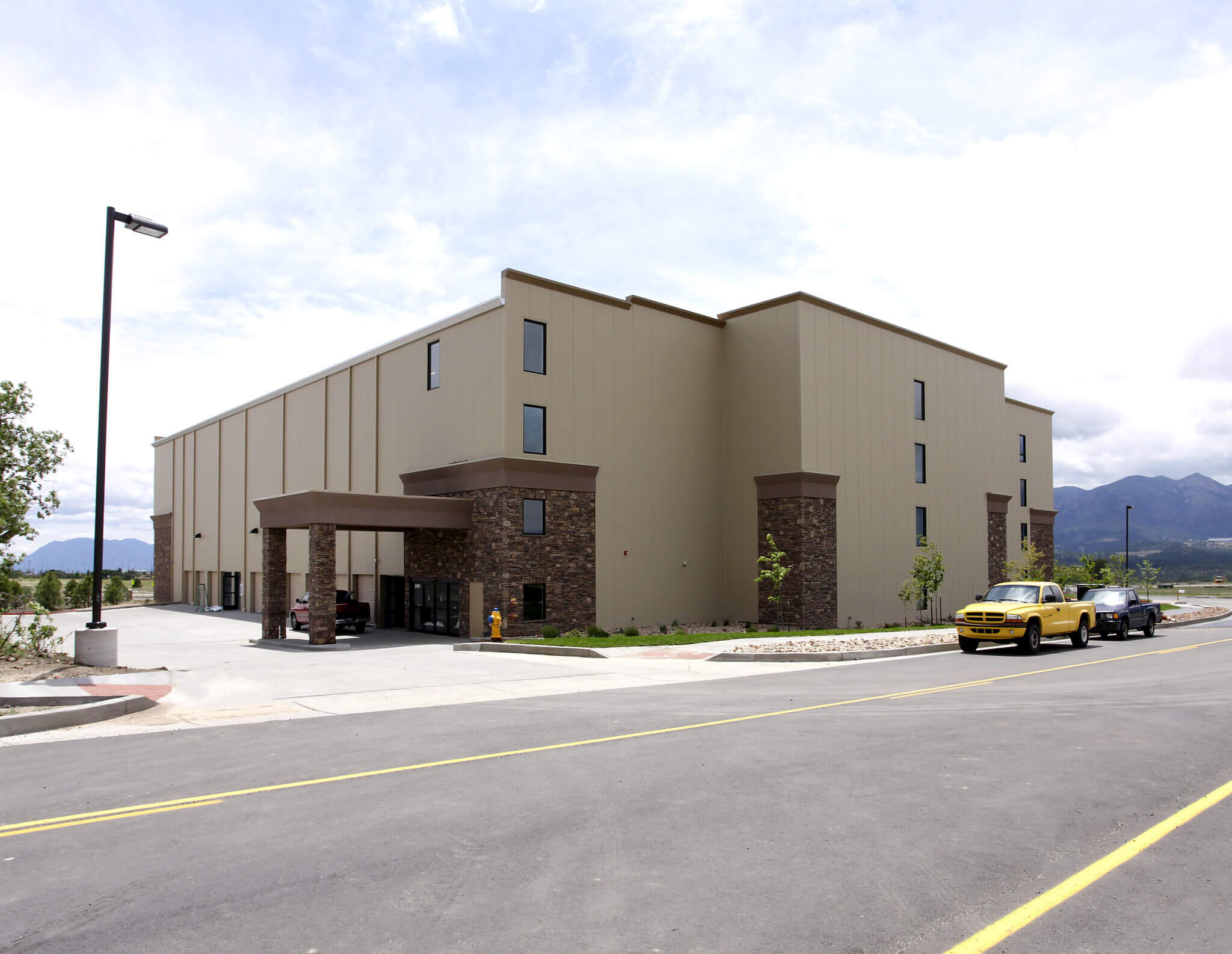 This facility is conveniently located right off I-25 and the Voyager Exit, right next to Fire Station 22. Our commercial spaces for rent are all located on the top floor of the building. Most of the offices overlook the Air Force Academy, with a gorgeous view of Pikes Peak. A separate set of restrooms is located in the commercial space area, and the offices are reachable by a code-controlled elevator or the stairs.