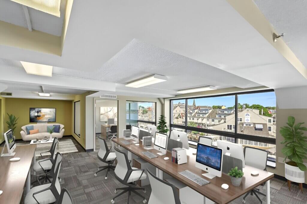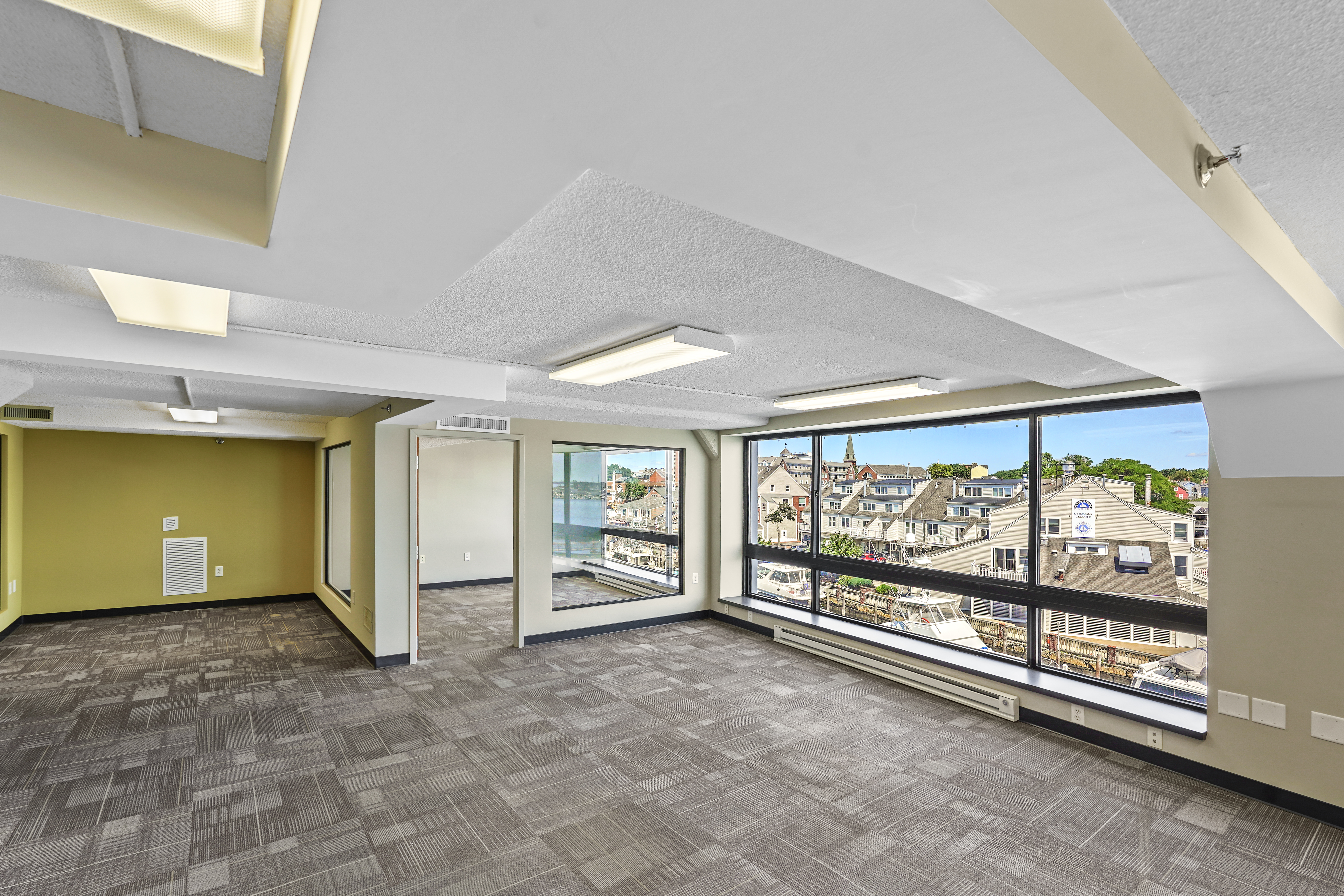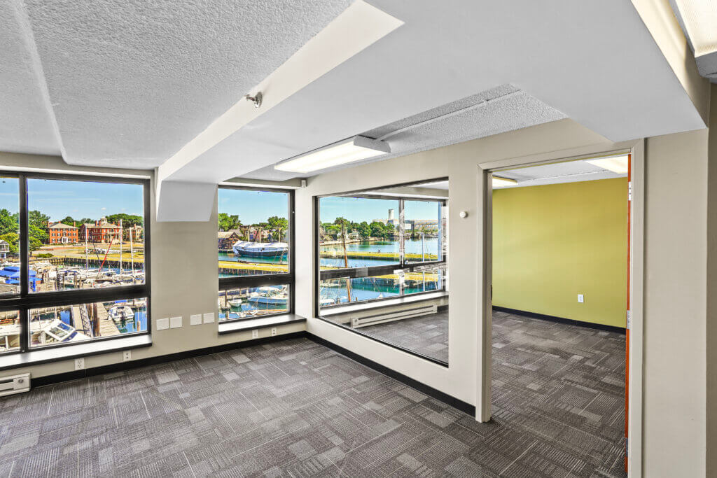 Located at Shetland Park on the Salem Harbor waterfront, this move-in-ready office suite features three private offices, a large glass conference room, ample open space for workstations/creative space, and a kitchen/break area. Not to mention the stunning views of Salem’s historic Derby Wharf area! Shared restrooms on the floor.