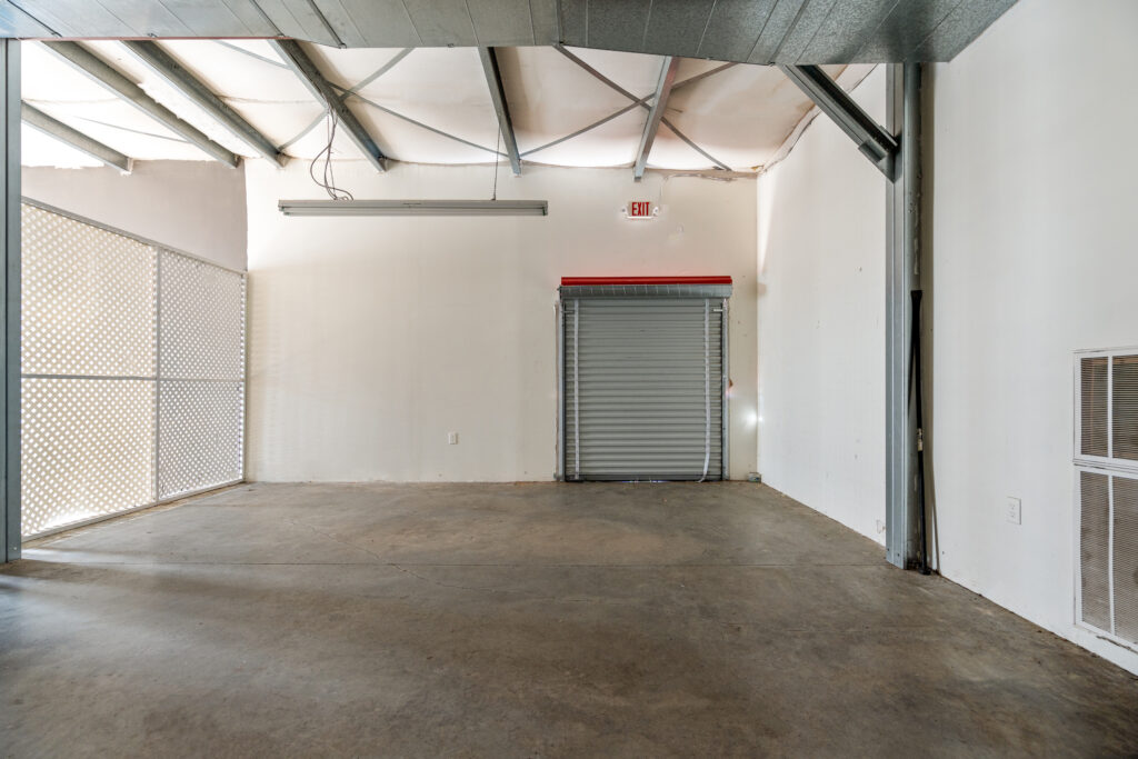This unit located off I-40 has a more industrial vibe. There is a vestibule at the front of the unit and an open warehouse space at the back, accessed by a roll-up door. Private restroom. Water and sewer are included. The tenant is responsible for electricity, which is metered separately for this unit.