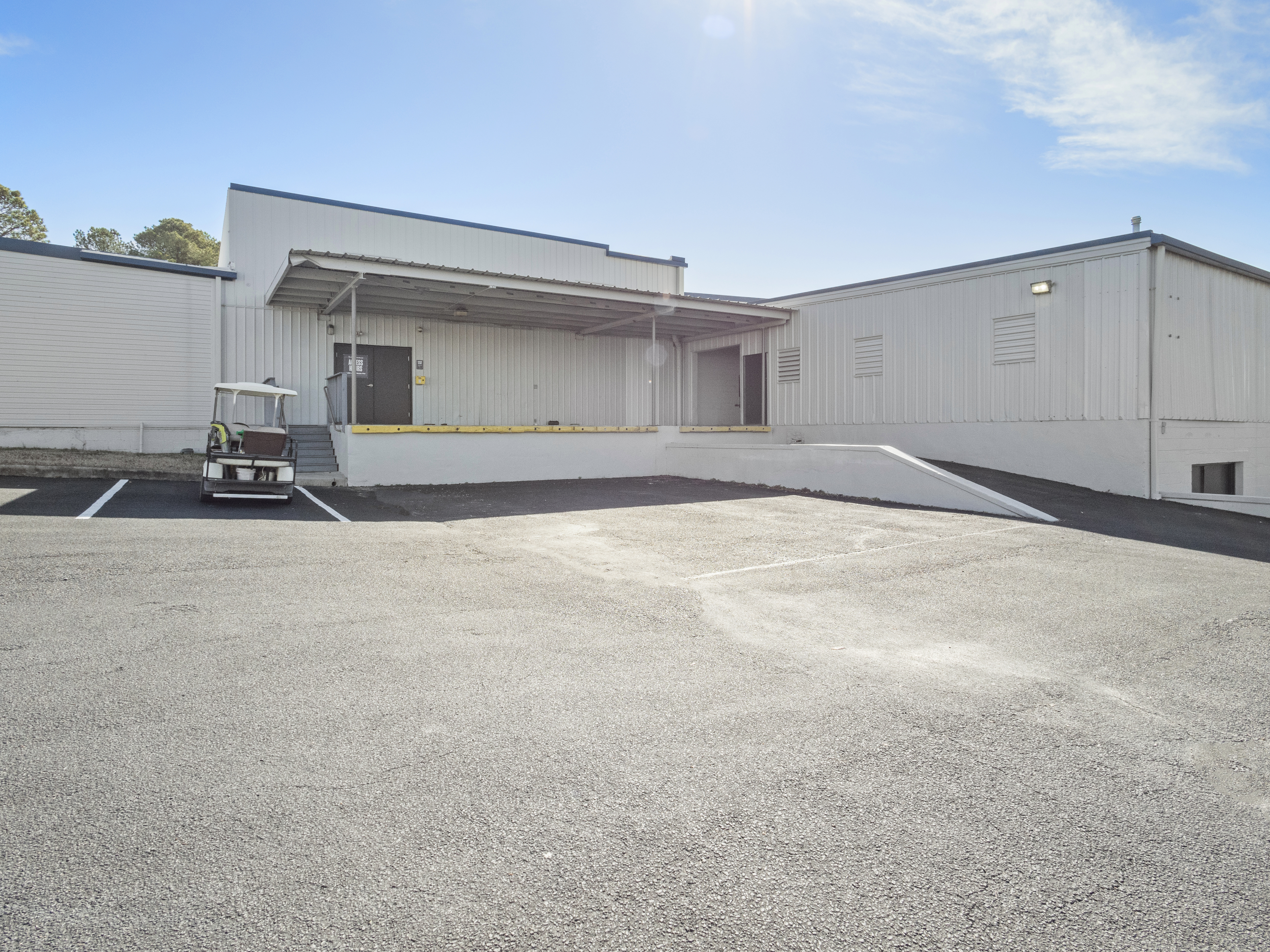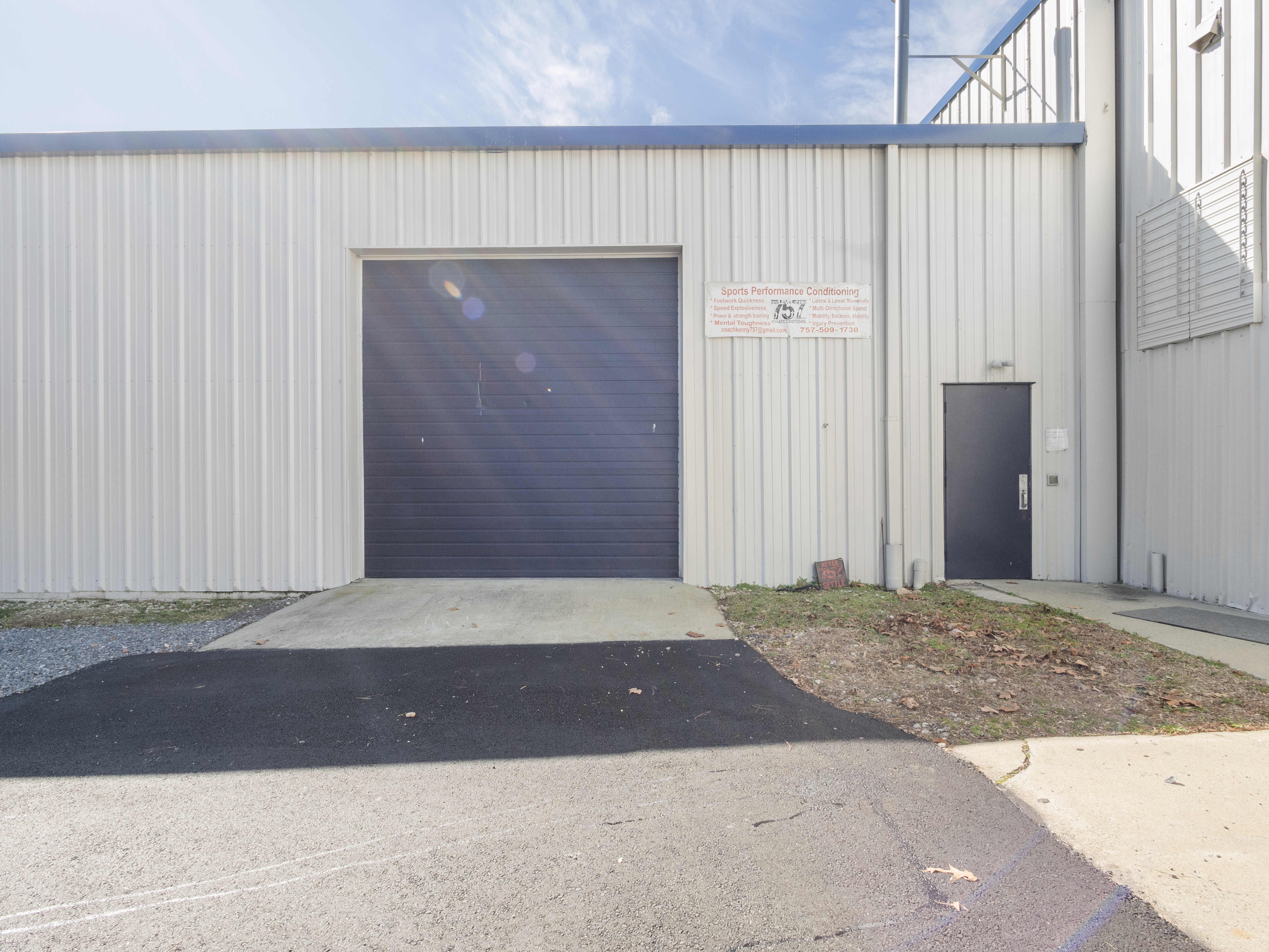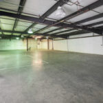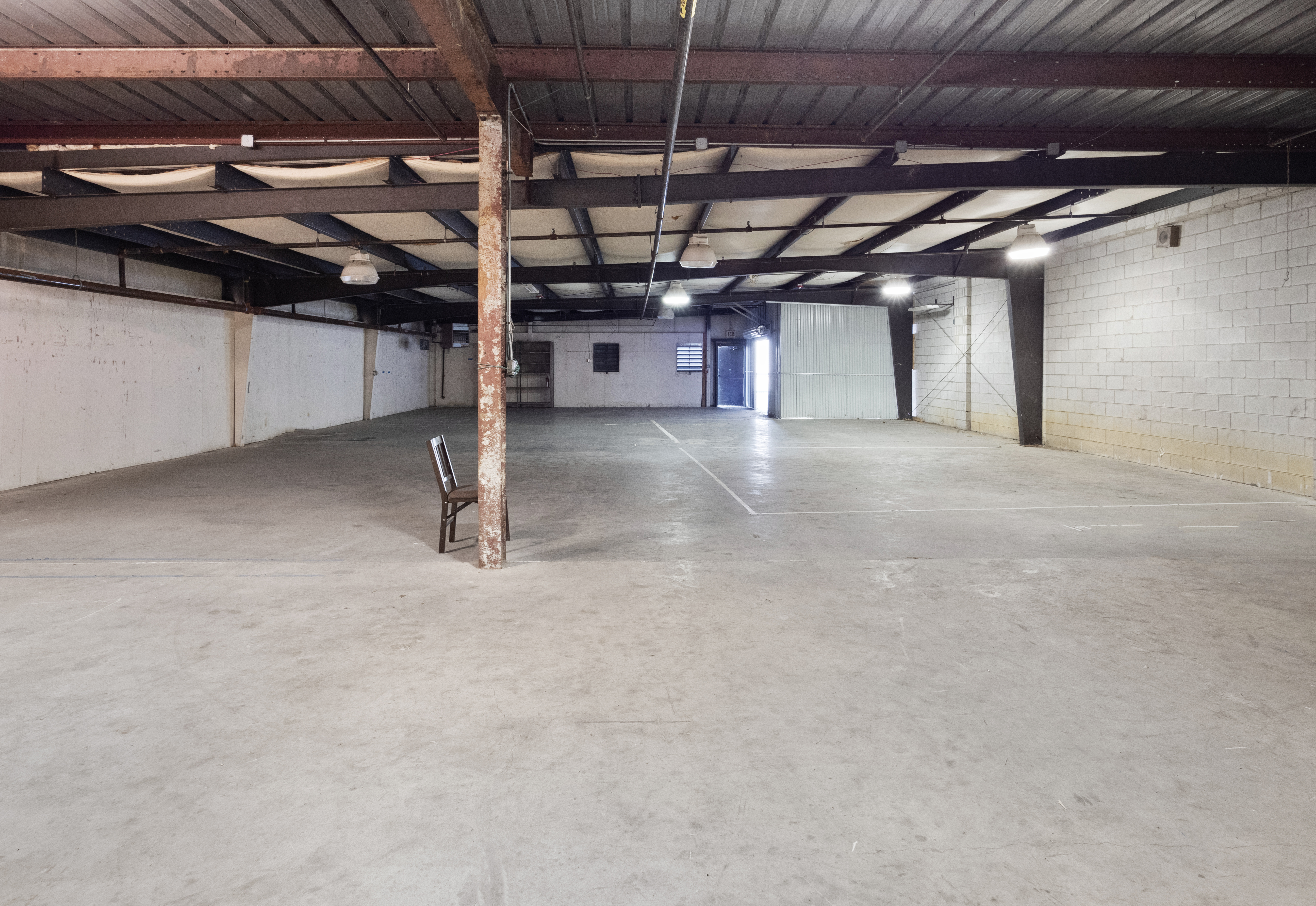 Unit 9 is a large, open warehouse space with a roll-up door. The attached lot has plenty of parking for you and your customers!